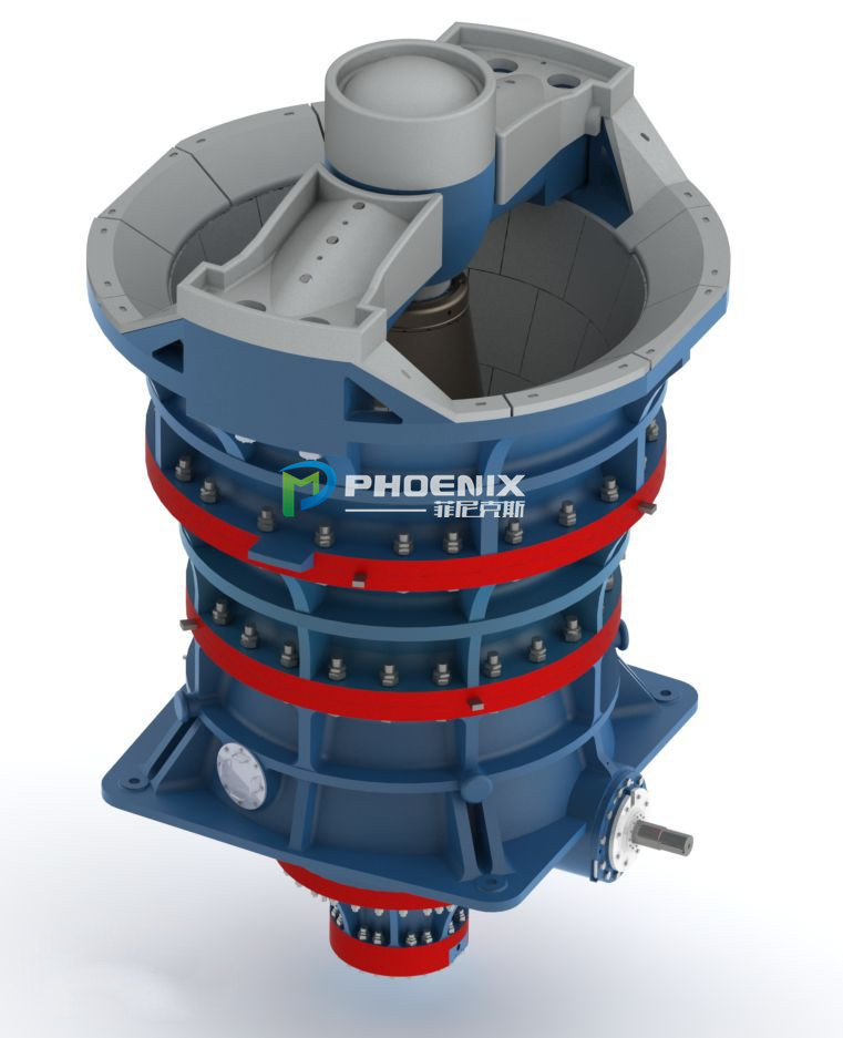 The rotary crusher is a large-scale crushing machine that uses crushing motion of the crushing cone in the cone cavity of the casing to cause extrusion, splitting and bending of the material, and coarse crushing of ore or rock of various hardnesses. The upper end of the main shaft equipped with the crushing cone is supported in the bushing in the middle of the beam, and the lower end is placed in the eccentric hole of the bushing. The rotary crusher is a vertical composite crusher, also known as a composite crusher, which is a machine for crushing production lines and sand production lines. The upper end of the main shaft equipped with the crushing cone is supported in the bushing in the middle of the beam, and the lower end is placed in the eccentric hole of the bushing. When the sleeve rotates, the crushing cone rotates around the center line of the machine, and its crushing action is continuous, so the working efficiency is higher than that of the jaw crusher. By the early 1970s, large gyratory crushers were able to process 5,000 tons of material per hour, with a maximum feed diameter of up to 2000 mm. The rotary crusher realizes the adjustment of the discharge opening and the overload insurance in two ways: First, the mechanical method is adopted, and the upper end of the main shaft has an adjusting nut, and the rotating adjusting nut can be lowered or raised, so that the discharge opening is followed. Larger or smaller, when overloaded, the insurance pin on the drive pulley is cut to achieve insurance; the second is a hydraulic hydraulic gyratory crusher whose main shaft is located on the plunger in the hydraulic cylinder, changing the plunger The volume of the hydraulic oil can change the upper and lower positions of the crushing cone, thereby changing the size of the discharge opening. When overloaded, the downward pressure of the main shaft increases, forcing the hydraulic oil under the plunger to enter the accumulator in the hydraulic transmission system, causing the crushing cone to descend to increase the discharge opening and discharge the non-material entering the crushing chamber. Broken objects (iron, wood, etc.) to achieve insurance.